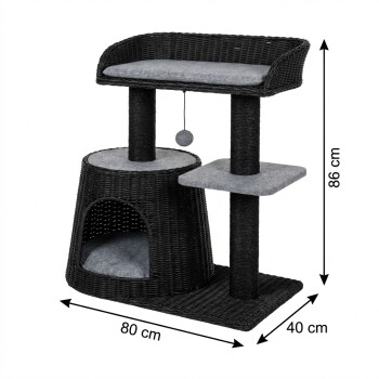 Katten hebben afwisseling en beweging nodig. Spelen is voor hen een manier om stress af te bouwen en hun lichaam te trainen – en daarbij vooral ook hun natuurlijke krabbehoefte te bevredigen. De AniOne krabpaal Nancy overtuigt niet alleen visueel, maar ook functioneel over de hele lijn. Het vlechtpatroon van het hol en de ligsofa zorgt voor een hoge luchtcirculatie. De donkergrijze vilten kussens kunnen indien nodig gemakkelijk worden verwijderd en op 30° gewassen.