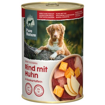 Pure Nature natvoer hond volwassen 6 x 400 g mit Huhn und Rind