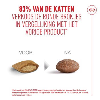 ROYAL CANIN® AGEING 11+ STERILISED is ontwikkeld voor senior katten en door hen getest. Het bevat makkelijk te kauwen brokjes om jouw kat een aangename eetervaring te bieden.